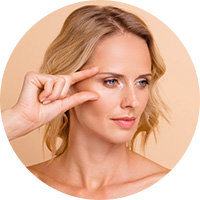 eller tænksom, vandrette linjer i panden, når du bliver overrasket eller blot løfter dine øjenbryn som en del af din ansigtsmimik samt rynker ved øjnene, der opstår ved smil.